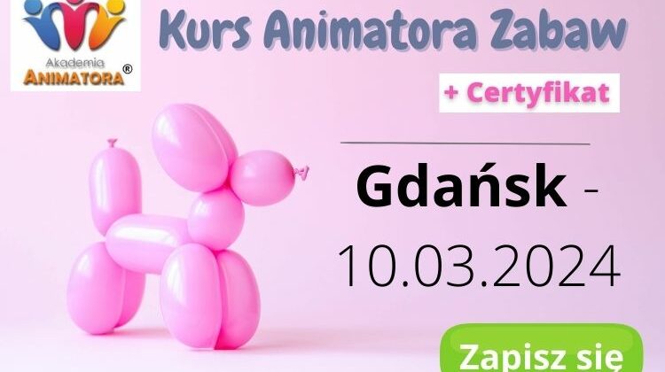 Akademia Animatora zaprasza Cię na Kurs Animatora Zabaw dla Dzieci, który odbędzie się 10 marca 2024 w Gdańsku.